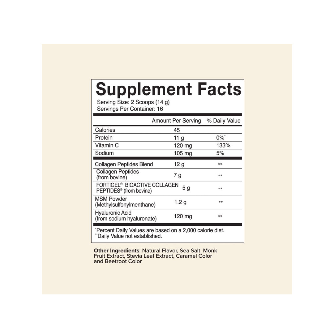• Clinically researched FORTIGEL® to optimize joint mobility and comfort. With added joint boosters MSM, hyaluronic acid, and Vitamin C